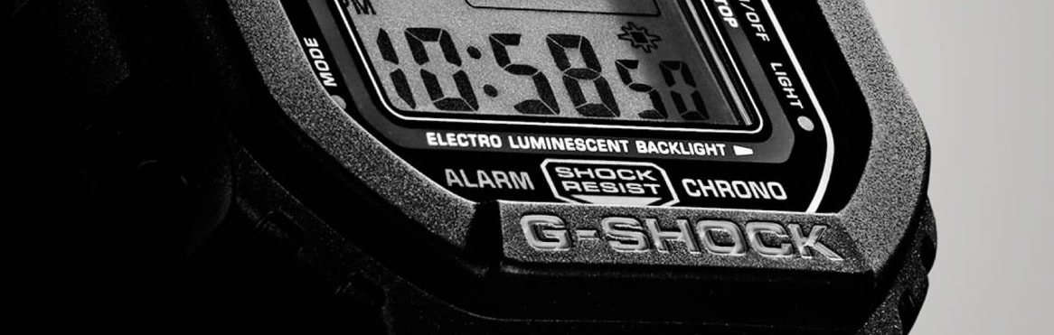 G-shock klokken ble utviklet på en tid hvor klokken fortsatt var ansett for å være et skjørt smykke. Casio ingeniøren, Ibe, som drømte om å designe “den uknuselige klokken”, ble katalysatoren for en ny epoke i klokke-verden. Etter å allerede ha forsøkt en gang i 1974, med sine første , fikk Casio en viktig og enda mer banebrytende innvirkning på klokke-markedet siden 1980-årene, med den uknuselige G-shock klokken. Den første G-shock klokken, DW500 modellen, kom på markedet i 1983. Modellen ble begynnelsen til en enorm suksesshistorie, da Casio med sine G-shock modeller, ble den internasjonale favoritten blant den urbane ungdommen. Den støtsikre G-shock klokken, ble raskt et verdenskjent symbol på robusthet, innovasjon og multifunksjonalitet. Endelig kunne klokke-entusiaster beholde klokken deres på mens de skateboarda og syklet på deres BMX’er. Det var nemlig ikke et problem for den støtsikre klokken å klare fall og støt. Uansett om G-shock klokken brukes til hverdagen, til sport eller brukes under ekstreme utendørs forhold, har G-shock klokken vært den perfekte, mest pålitelige følgesvennen til enhver situasjon i snart over 35 år. G-shock klokken bæres nemlig av mennesker, som flytter grenser for hva der er mulig.
